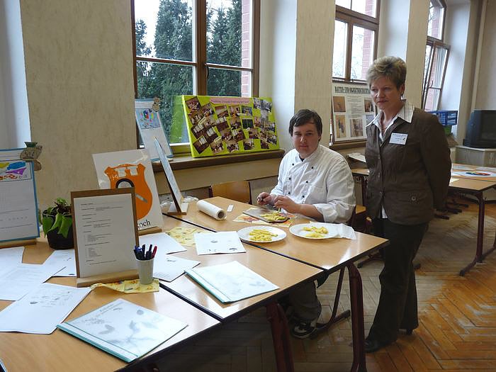 Und wer es nicht bei Kaffe und Kuchen belassen wollte, konnte vor dem Gebäude sich auch noch eine Rostbratwurst kaufen. Sehr schön bei diesem Tag der offenen Tür: Nicht nur die Erzieher, sondern auch die Schüler hatten alle ein Schildchen an der Kleidung, so wusste jeder der Besucher, wer zur Schule gehört, und wer nicht. Die Besucher mussten sicher ihren Weg heute in das Staatlichen Berufsschulzentrum Sondershausen nicht bereuen.