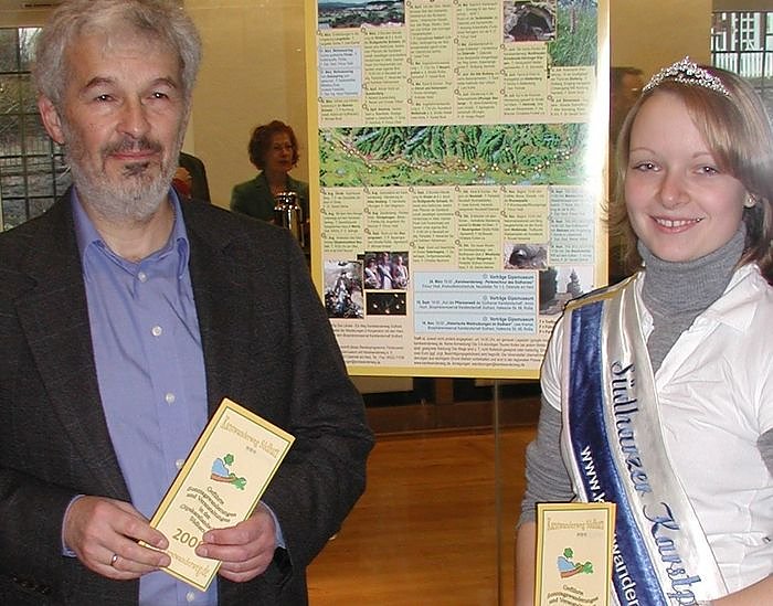 Karstprinzessin Wiebke Berkel aus Klettenberg und der Koordinator für die Sonntagswanderungen, Firouz Vladi, aus Osterode stellen das neue Wanderprogramm vor