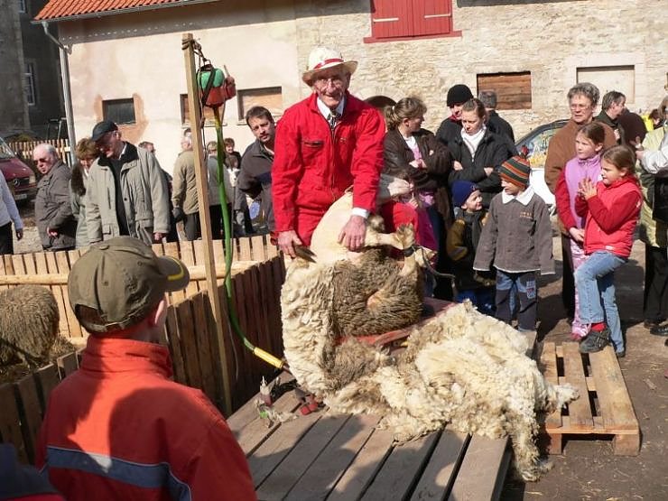Um 15.00 Uhr spielt die Musikschule Fröhlich aus Leinefelde aus ihrem reichhaltigem Repertoire. Danach können die Besucher hautnah erleben, wie der Schäfer Ernst Siebert die Schafe von ihrer Wolle befreit.