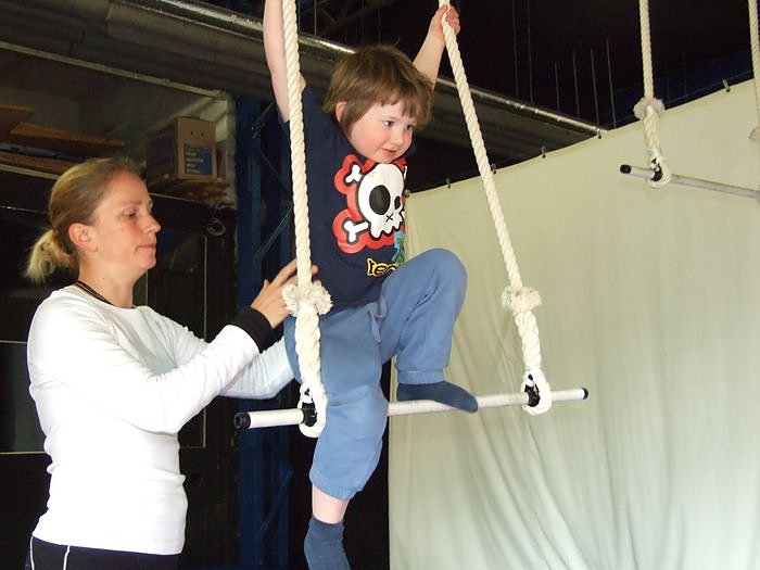 Autor: nnzDie Zirkus- und Theaterpädagogin Astrid Krause vom Kinderzirkus Tasifan aus Weimar trainiert die Zappelini-Kinder am Trapez