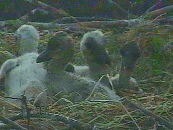 Am 15.05. sind die ersten beiden Küken geschlüpft. Da die Störche erst mit dem zweiten Ei anfangen, intensiv zu brüten, schlüpfen die ersten Beiden am gleichen Tag, dann so, wie die Eier gelegt worden, alle zwei Tage das nächste, also am 17. und 19. Mai. Bis auf das zuletzt geschlüpfte Küken, das etwas kleiner ist, sind alle wohl auf. Sie bekommen momentan ausreichend und auch schnabelgerechtes Futter wie zum Beispiel Regenwürmer, kleine Fische, Frösche und Echsen.