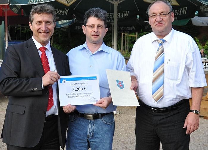 Minister Dr. Klaus Zeh übergab im Beisein von Egon Primas (CDU) eine finanzielle Unterstützung für den Harzer Heimattag. Der Verein hat zur Durchführung und Absicherung des Harzer Heimattages 3.200 Euro Lottomittel erhalten.