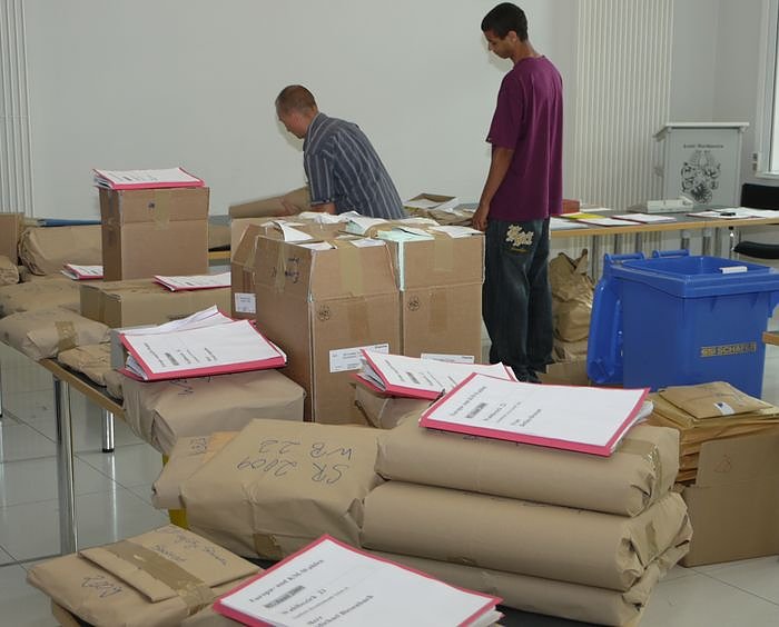 Autor: nnzIm Bürgersaal von Nordhausen werden die Wahlunterlagen verpackt und verschnürt. Am nächsten Mittwoch wird erneut ausgezählt