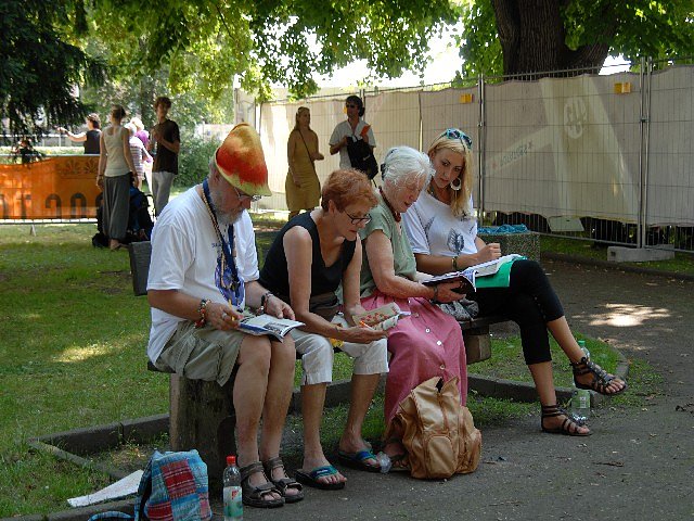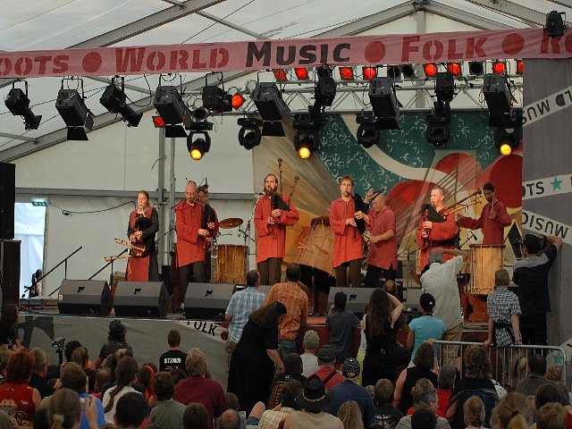 Auf der Marktbühne hopsen schwule Schuhplattler, singen drei israelische Mädchen wunderbare Lieder, im alten Rathaus erzählt die chinesische Sängerin Gong Linna ihr Leben, Hans Söllner wird im Schminkkasten von Mike Kemp interviewt und die Sonne brennt heiß auf die nunmehr 70.000 Festivalgäste. Im Park finden die Kasai Allstars das Wetter absolut toll und zelebrieren die Musik und Tänze ihrer afrikanischen Heimat nur leicht mit einem Leopardenfesll bekleidet. Allerdings keine Kriegstänze, wie Festivaldirektor Uli Doberenz betont. Weswegen aus den Tanzschwerpunkten Männer- und Werbetänze auch die Werbetänze gestrichen wurden. Zu schnell hätte da der eine oder andere Tänzer sein Tomahawk schwingen können und das passt nun wirklich nicht zum friedlichsten aller deutschen Sommerfestivals.