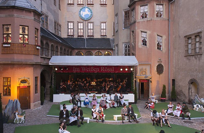 Ralph Benatzkys Revue-Operette Im weißen Rössl in der Inszenierung von Kerstin Weiß ist offensichtlich ein Volltreffer, den die Theater Nordhausen/Loh-Orchester Sondershausen GmbH für das Festspielpublikum im vierten Jahr gelandet hat. Erstmals in diesem Jahr stehen jungen Sängern erfahrene Profis gegenüber, wie beispielsweise der Tenor Alec Otto, den die Zuschauer in den vergangenen zwei Spielzeiten im Theater Nordhausen in verschiedenen Partien wie beispielsweise in der Oper Hoffmanns Erzählungen oder in der Operette Eine Nacht in Venedig sowie bei verschiedenen Konzerten erleben konnten.