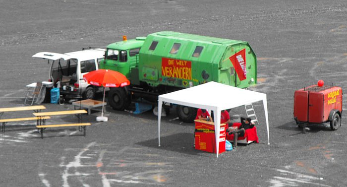 Autor: nnzDieser Platz stand eigentlich überhaupt nicht auf dem Programm, dennoch wurde hier vermutlich eine Pause eingelegt. Am Abend soll es dann noch einen Polit-Talk auf dem roten Sofa, Wasserbomben gegen den Krieg und vieles mehr auf dem Hof der Gasstätte Destille geben und danach soll diverse Musik aufgelegt werden.