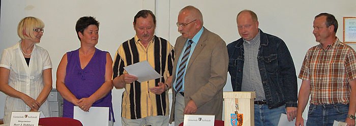 Weiterhin wurde mit 13 Ja- und zwei Nein-Stimmen Otto Müller zum ersten ehrenamtlichen Beigeordneten gewählt.