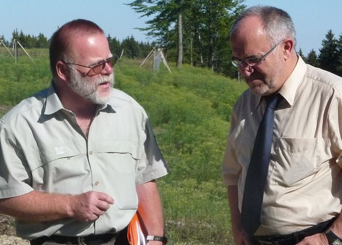 Vor Ort wollte sich Sklenar, der vom Landtagsabgeordneten Egon Primas begleitet wurde, über den Stand der Aufforstung nach dem Orkan Kyrill informieren. Eine der Flächen, die Anfang 2007 von dem verheerenden Unwetter betroffen war, ist der Grüne Platz, Fast 2.800 Festmeter Fichte fielen Kyrill zum Opfer. Jetzt stehen auf einer Fläche von 6,4 Hektar 2.500 jungen Fichten, 7.000 Buchen und 2.700 Bergahornstecklinge.