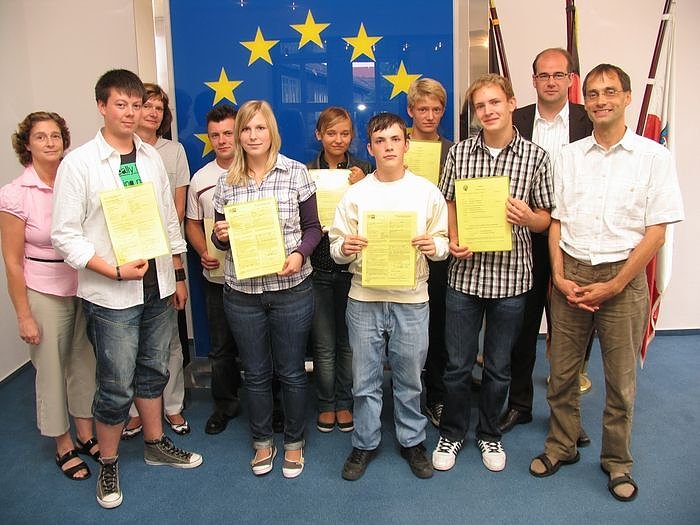 Jennifer Kressel, Anna-Laura Wieninger, Tobias Köcher, Felix Härting, Felix Buchardt, Johannes Pelk und Martin Hennecke werden ausgebildet zu Garten- und Landschaftsfbauern, zu Hochbaufacharbeitern, zur Fachkraft für Abwassertechnik, zu Verwaltungsfachangestellten und zur Kauffrau für Tourismus und Freizeit. Wie in jedem Jahr habe es viele Bewerbungen für den Beruf des Verwaltungsfachangestellten gegeben, und eher wenig für die gewerblichen Berufe, sagte Rita Hornkohl, die Ausbildungsbeauftragte der Stadtverwaltung. Insgesamt führe die Stadtverwaltung zurzeit 19 Auszubildende zum Beruf. Die Bewerbungsrunde für das Jahr 2010 beginnt im September, sagte Frau Hornkohl.