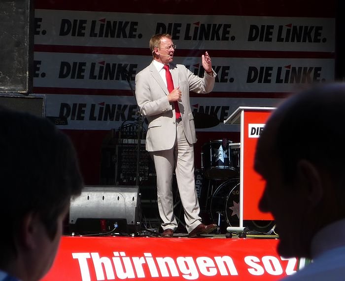 Nach der Angela-Show der CDU wollte heute die LINKE in Thüringen mit der Bodo-Show kontern. Die Show lief auf dem Theaterplatz, nur: Es fehlten die Zuschauer und Zuhörer...