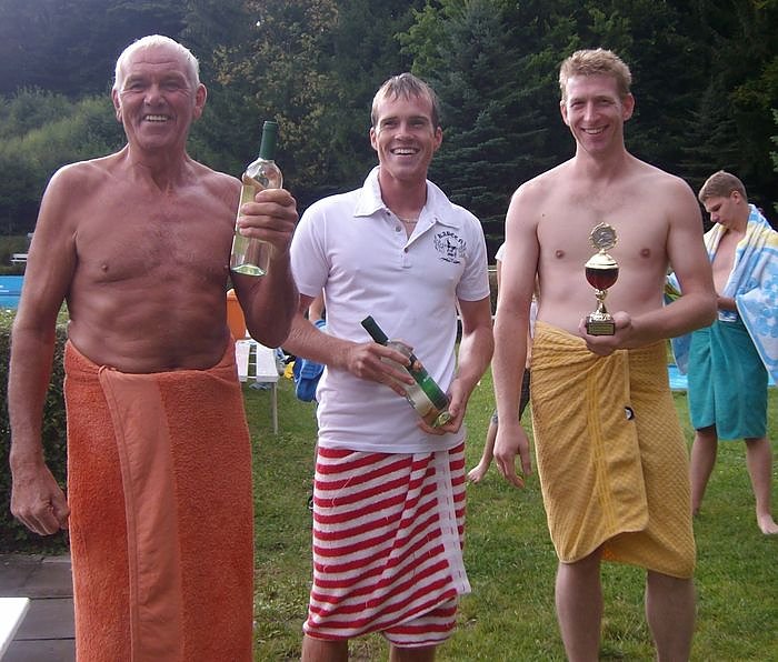 Als Sieger gingen hierbei die Feuerwehrleute mit ihrem Meisterschwimmer Jens Gottschalk hervor. Es folgten die Volleyballer. Besonders hervorzuheben ist hierbei der körperliche Einsatz von Seniorschwimmer Horst Stein, der den dritten Platz belegte. Wassersackhüpfen, Springburg und die super musikalische Unterhaltung machten das Neptunfest zu einem amüsanten Nachmittag.