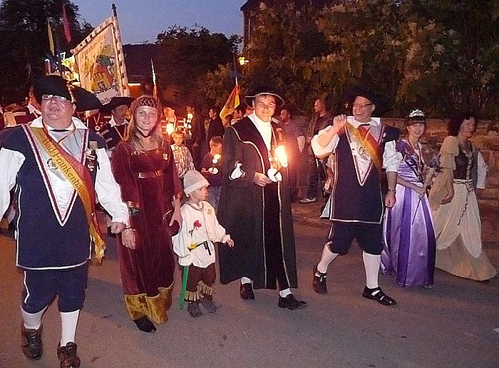 Eindrucksvoller ist es aber, wenn man wartet und der ganze Zug durch Bad Frankenhausen unterwegs war, und dann bei nun schon Dunkelheit den ganzen Zug genießt. Da kommen die Fackeln erst richtig zu ihrer Geltung. Wer allerdings flinke Füße hat, der schaut sich den Zug im Hellen an und läuft dann die paar Schritte zum Untergelgen an die Stadtmauer.
