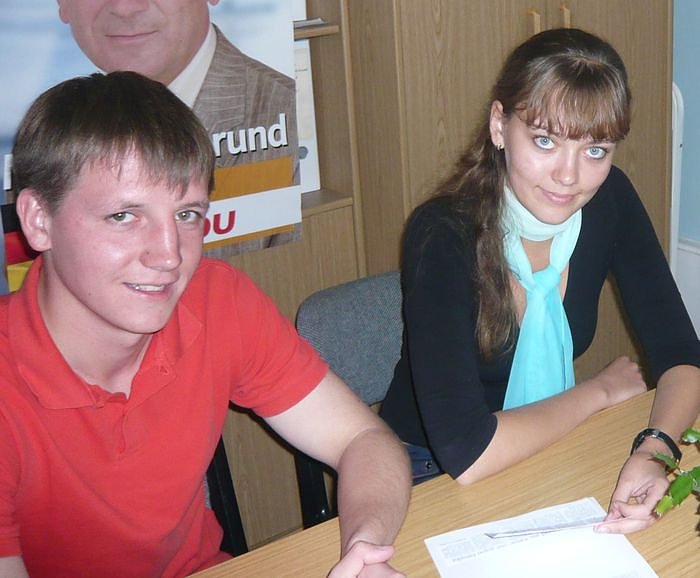 Autor: nnzIn Twerk, 200 Kilometer von Moskau entfernt und für russische Verhältnisse gleich um die Ecke gelegen, studieren die beiden Wahlinteressierten ansonsten Zeitgeschichte und Sprachen. Sie sind Mitglied der Jugendorganisation der Putin-Partei Einiges Russland und engagieren sich in Jugendparlamenten gegen Rechtsextremismus und begeistern andere Jugendliche für Politik. In einem Wettbewerb der Konrad-Adenauer-Stiftung stellten sie ihre Deutschkenntnisse und ihr Wissen über die Wahlen in Deutschland unter Beweis und gewannen so Plätze für die begehrte Reise.
