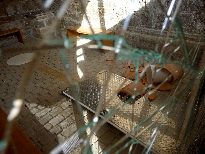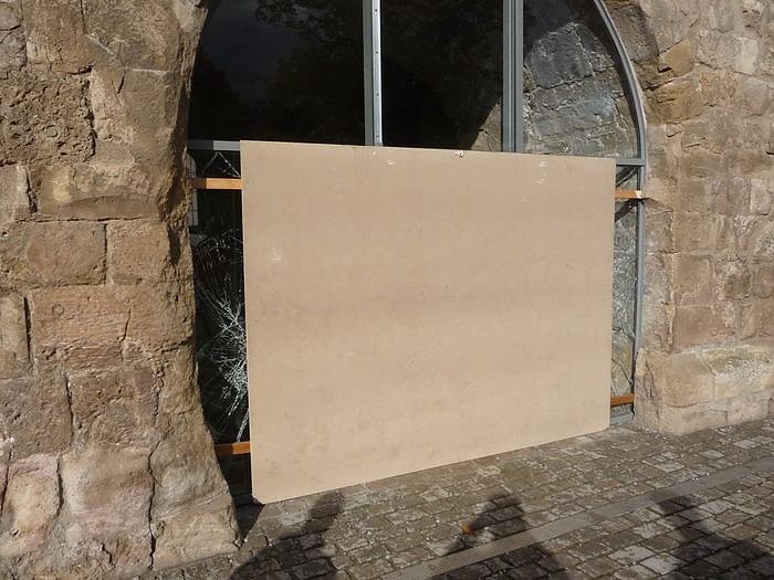 In der Nacht von Freitag zu Samstag schmissen bislang unbekannte Täter Granitsteine gegen die beiden rechts und links neben der Eingangstür befindlichen Sicherheitsglasfensterscheiben des Petriturms. Die nnz war vor Ort.