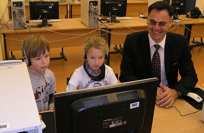 Autor: nnzDie Kinder können nun auch Computerprogramme mit Sound benutzen, was besonders im Bereich Sprachen von Vorteil ist. Herr Dießner von der Firma Heldele übergab die Kopfhörer persönlich, und hatte viel Freude beim Test mit den Schülern.