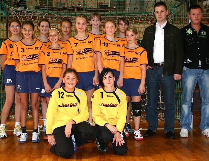 Große Freude kürzlich bei den Handball-D-Mädchen der HSG Nordhausen: Michael Menzel vom Nordhäuser Computer Studio in der Bahnhofstraße und Markus Struve von City Sports übergaben der Mannschaft einen Satz neue, schmucke Spielkleidung.