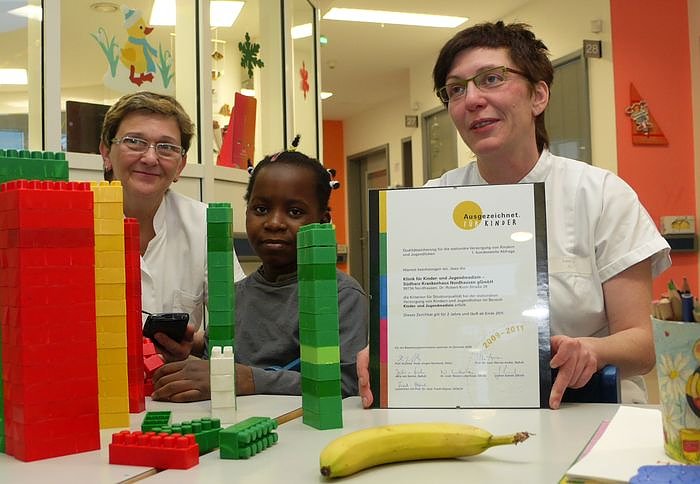 Zuvor waren in der Klinik umfangreiche Kriterien abgefragt worden, die letztlich auf eine stetige Sicherung der Qualität der Arbeit hinzielen. Chefärztin Dr. med. Sylke Ludwig ist stolz auf das Gütesiegel, denn sie und ihr Team der Klinik mussten sich im Rahmen eines 16seitigen Fragebogen den Qualitätskriterien für die Betreuung von kranken Kindern und Jugendlichen stellen.