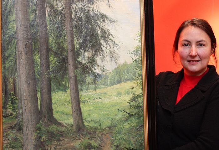 Susanne Hinsching mit einer Harzlandschaft von Richard Thierbach