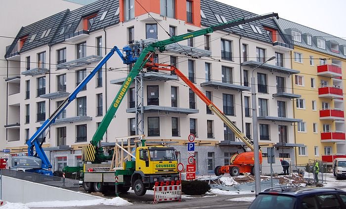 Autor: nnzMontage der Balkone am sanierten Wohnblock der Städtischen Wohnungsbaugesellschaft