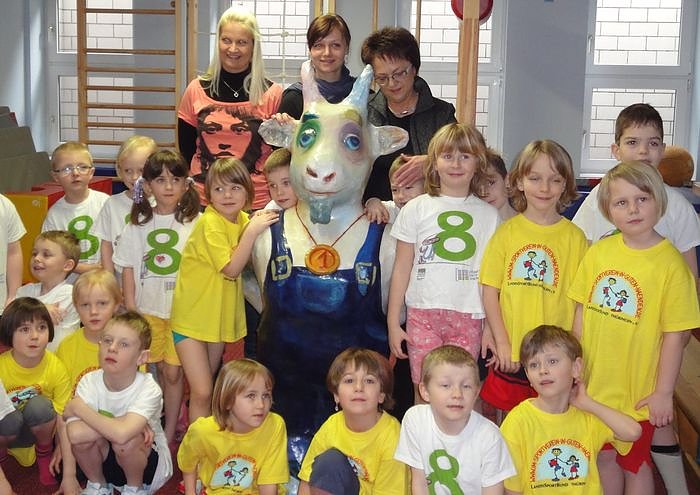 Belohnt werden die Kinder dafür mit dem Turnböckchen. Den Wanderpokal hat die Nordhäuser Jugendkunstschule gerade erst neu gestaltet. Nun gastiert das funkelnagelneue Turnböckchen für ein halbes Jahr in Heringen. Christine Wagner, Fachbereichsleiterin Jugend und Soziales im Landratsamt Nordhausen, überreichte heute den Wanderpokal an die begeisterten Kinder und Erzieherinnen in der "Kobenach-Stiftung" Heringen.