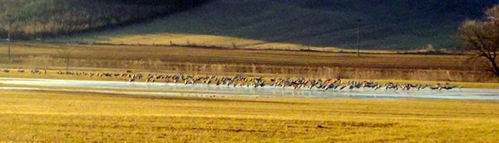 Hallo liebes nnz-Redaktionsteam, heute früh um 7.30 Uhr, auf dem Weg zur Arbeit, haben wir die Kraniche beim Zwischenstopp auf einem Feld zwischen Harzungen und Niedersachswerfen fotografieren können ... ein atemberaubender Anblick.