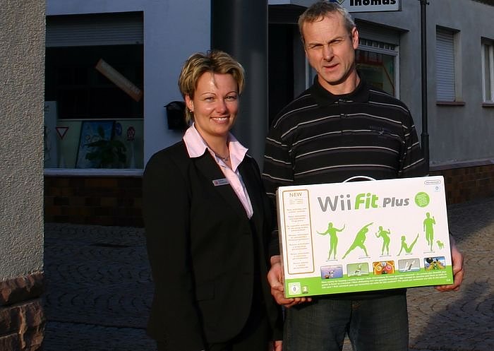 Uwe Gorges aus Auleben nutzte die Gelegenheit in der Filiale Heringen und testete dort seine Balance. Unter allen Teilnehmer wurde er als glücklicher Gewinner einer Wii-Konsole von Nintendo inklusive Balance Board gezogen.