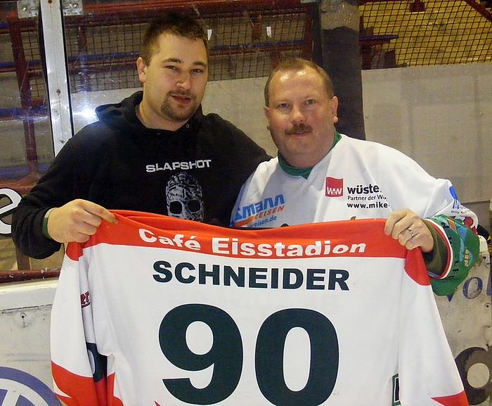 Autor: nnzDas Trikot von ESC-Verteidiger Markus Schneider (links) erzielte bei der Versteigerung den Höchstpreis
