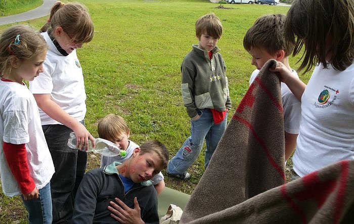 Hier zum Beispiel das richtigen Verhalten nach einem Wespenstich. Die besten Gruppen werden am Nachmittag ausgezeichnet.