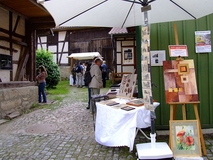 Autor: khhAm Samstag, dem 19. Juni 2010 findet im Ensemble des kleinen Dorfes im Kyffhäuserkreis der 20. KUNSTMARKT statt. In zahlreichen geöffneten Fachwerkhöfen und entlang der Straßen bieten über 100 Künstler, Kunsthandwerker und Aussteller aus mehreren Bundesländern ihre Werke zum Verkauf oder stellen diese im besonderen Ambiente des Ortes aus.