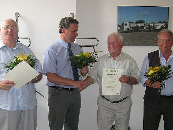 Gerhard Puff und Günter Eckardt aus Nordhausen sowie Horst Apel aus Heinrode haben sich seit über 50 Jahren verkehrssicher mit Ihrem Kraftfahrzeug im Straßenverkehr bewährt. Dieter Köhler, Projektleiter der Kreisverkehrswacht Nordhausen, verlieh ihnen dafür im Auftrag der Deutschen Verkehrswacht die Auszeichnung Goldenes Lorbeerblatt und verbindet dies mit dem Wunsch auf weitere vorbildliche Teilnahme am Straßenverkehr.