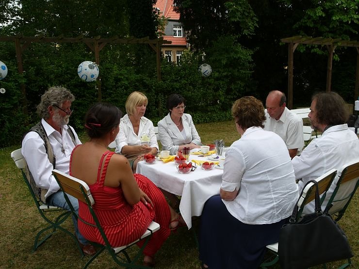 Der Termin war weit weniger repräsentativ als der vorhergegangene und auch von Seiten der Stadt Nordhausen eher als Ausklang gedacht. Während Wolfgang Böhmer noch einen letzten Termin in Kelbra wahrnehmen musste, gönnten sich die Thüringer eine kurze Pause. Im Garten des Kunsthauses schien die Politik für einen Moment vergessen und man schmiedete, bei Kaffee und frischen Erdbeeren, Pläne für eventuelle weitere Besuche in der Kreisstadt. Aber die werden sicher länger als eine Woche auf sich warten lassen.
