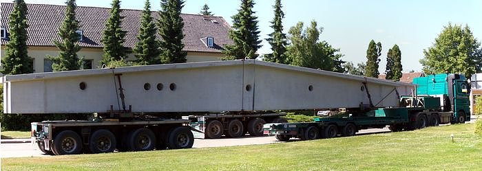 Die Universalbeton Heringen hatte Ende April einen anspruchsvollen Auftrag erhalten. Auftraggeber ist die HAUX-LIFE-SUPPORT GmbH in Cuxhaven, die eine neue Fabrikationsstätte zur Herstellung von Apparaten und Behältern baut. Für diesen Neubau sind in Heringen 190 Betonfertigteile produziert worden mit einem Volumen von 580 Kubikmeter. Darunter auch sieben Binder, die gigantische Ausmaße haben.