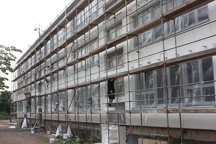 Die Wärme-Dämm-Arbeiten an der letzten Fassade sollen spätestens im September abgeschlossen sein