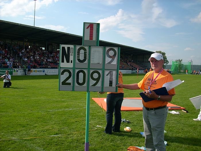 Für die meisten Athleten ist der Göldner von Sondershausen ein dankbarer Austragungsort, kann man doch so kurz nach einer Meisterschaft viel Beifall abholen, oder aber auch Frust abbauen, wenn es doch nicht mit einer Medaille geklappt hatte. Das alles ficht allerdings Ralf Bartels nicht an. Er weihte den neu errichteten Kugelstoßring gleich im ersten Versuch mit einem neuen Meetingrekord ein und wuchtete die Kugel auf ausgezeichnete 20,91 Meter.