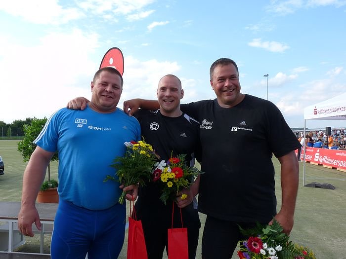 Da nimmt es kein Wunder, wenn Sieger Ralf Bartels (li.) und Zweiter Andy Dittmar (re.) den Dritten Markus Bandekow in die Mitte nahmen und guter Laune waren.