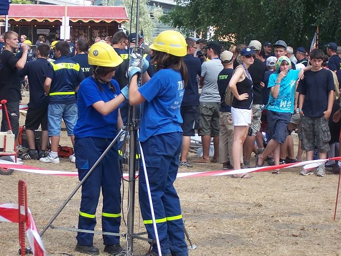 Heute war es endlich so weit. Die lang ersehnte Reise nach Wolfsburg zum 13. Bundesjugendlager ging los. Heute mussten wir schon sehr früh aufstehen denn wir mussten noch den MLW [Mannschaftslastwagen der Fachgruppe des Ortsverbandes] fertig bepacken, frühstücken und aufräumen. Dann ging es ab in die Autos und mit guter Laune Richtung Wolfsburg. Die Fahrt war schnell vorbei, so ca. um 11 Uhr sind wir angekommen. Auf dem Gelände vom Allerpark haben wir dann unsere Zelte aufgebaut. Den restlichen Tag mussten wir uns erst mal zurecht finden. Uns hat es dort vom ersten Moment an Gefallen. =)