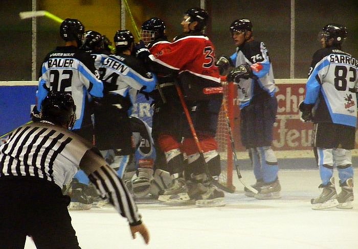 Besonders bei zwei Sololäufen von Stefan Bilstein und Marc Garthe sowie in der Schlussphase, als die Harzer auf den Siegtreffer drängten, behielt Grunwald die Ruhe. Da auf der Braunlager Seite auch Mario D'Antuono ein starkes Spiel ablieferte, blieben Tore Mangelware. Für die Berliner hatte Roman Veber im ersten Drittel die Führung erzielt (16.). Alois Öttl besorgte mit einem mächtigen Schlagschuss in Unterzahl den verdienten Ausgleich (25.). Im abschließenden Penaltyschießen traf lediglich Berlins Thomas Supis, während alle weiteren Schützen vergaben.