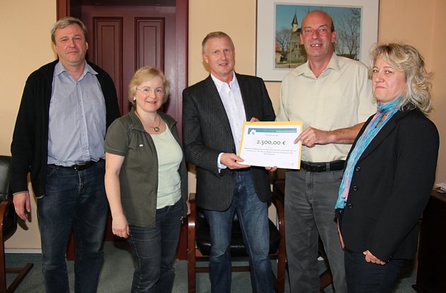 Winfried Berger (Mitarbeiter der Landeskirchlichen Gemeinschaft Nordhausen), Vorstandsmitglied Carmen Bock, Thomas Käßner (Inspektor des Gemeinschaftsverband Sachsen-Anhalt innerhalb der ev. Kirche), Landrat Joachim Claus und Gabriele Kröner, ebenfalls Vorstandsmitglied in Nordhausen und verantwortlich für die Teestube
