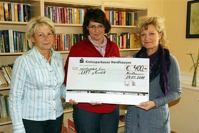 Autor: nnzÜber 400 Euro vom Verein Alternative 54 können sich die Lesementoren des MEGEHA freuen, die bei Grund- und Regelschulkindern über den Unterricht hinaus das Lesen fördern. LIFT-Geschäftsführerin Hannelore Haase und MEGEHA-Leiterin Babett Käferstein nahmen den Scheck von der Landtagsabgeordneten Birgit Keller (Die Linke) entgegen.