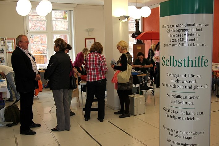 Außerdem ging es heute in einem weiteren Referat um das Leben mit Sehbeeinträchtigung, in dem Mitglieder der Kreisorganisation Nordhausen des Blinden- und Sehbehindertenverband Thüringen e.V. Rede und Antwort standen. Mehrere Informationsstände, beispielsweise von den Selbsthilfegruppen Kehlkopferkrankte/Südharz und der AG Nordhausen der Deutschen-Rheuma-Liga ergänzten die Vorträge.