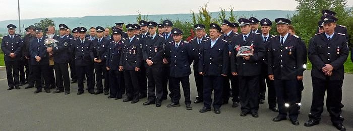 Vertreter des Stadtrates, der Kreisbrandinspektor des Landkreises Nordhausen, Kameraden der Freiwilligen Feuerwehren der erfüllenden Gemeinde Bleicherode, der Gemeinde Sollstedt und der Berufsfeuerwehr Nordhausen gratulierten zum neuen Fahrzeug.