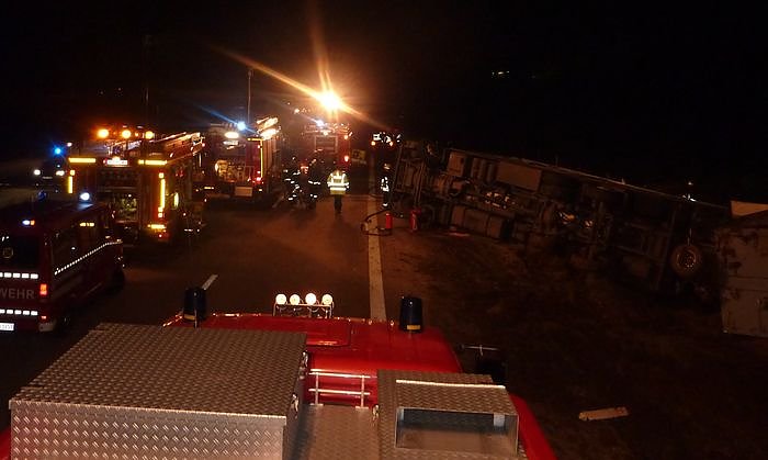 In der Nacht hatte sich auf der A 38 ein folgenschwerer Unfall ereignet. Ein Tiertransporter war umgekippt. Zugmaschine und Hänger hatten 65 Schweine geladen. Hier erste Informationen...
