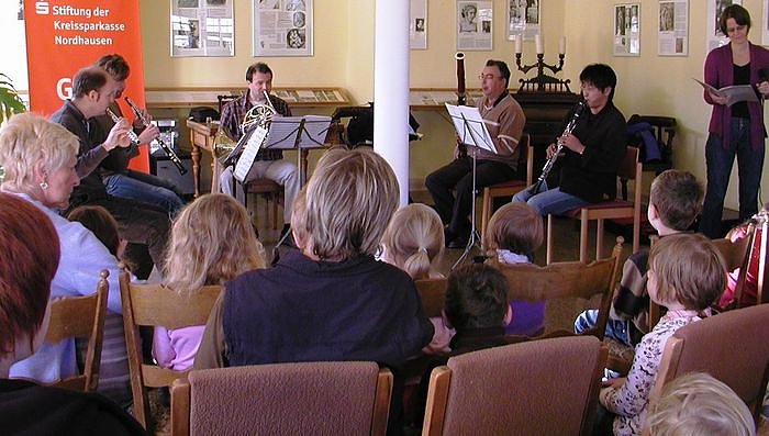 Für die Mädchen und Jungen war es ein ganz aufregender Vormittag. Er begann schon damit, dass sie zum Konzert in das Schloss von Auleben gingen, da im Kindergarten umgebaut wird. Im Humboldt-Zimmer stimmten bereits die Musiker ihre Instrumente, als die Kinder ganz leise ihre Plätze einnahmen.