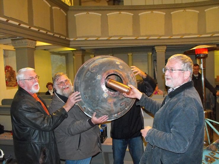 Durch Heizpilz, Bratwürstchen und Glühwein gewärmt wohnten einige Sundhäuser dem, man darf es ruhig so nennen, historischem Moment bei. "Wir werden nun Teil der Geschichte" sagte Pfarrer Eckhard Wolff, bevor er und der Kunstschmied Lutz-Martin Figulla, der Wetterfahne und Kugel restauriert hatte, gemeinsam die neue Zeitkapsel schlossen. Aus den Fehlern der Vergangenheit hat man gelernt. Die neue Zeitkapsel ist aus Kupfer, und wurde von Martin Figulla vor versammelter Gemeinde verschweißt, um die Momentaufnahme aus dem Oktober 2010, aber auch die Hinterlassenschaften der früheren Zeiten, vor Wasser zu schützen, und so für die Nachwelt zu konservieren.