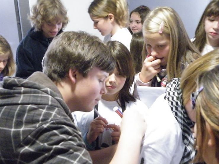 Dort wartete eine ganz besondere Führung auf sie. Sie erfuhren wie ein Drehtag aussieht, erkundeten die Kulissen und Drehorte und hatten die einzigartige Möglichkeit, 13 ihrer Lieblingsdarsteller vor Ort bei den Dreharbeiten zu sehen. Da war der Ansturm auf Autogramme und Erinnerungsfotos groß. Viele Fragen hatten die Mädchen an die Jungdarsteller mitgebracht: Wie seid Ihr zu Schloss Einstein gekommen? Wie lange wird gedreht? Wann macht Ihr Eure Hausaufgaben?