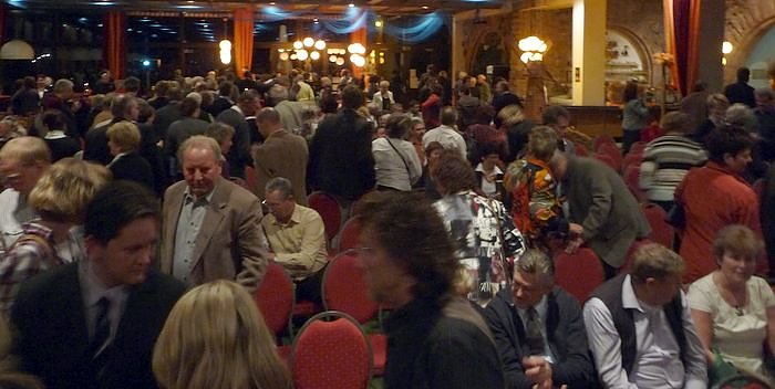 Nach dem unterhaltsamen Prolog begrüßte Volksbank-Vorstand Peter Herbst die wichtigsten Personen für die Bank, die Kunden und tat kund, dass die Volksbank Nordthüringen wie alle anderen Genossenschaftsbanken nicht mit der Finanzkrise in Verbindung zu bringen seien gewesen. Denn im Unterschied zu den Großbanken betreiben die Genossenschaftler ein einfaches Geschäftsmodell, sie nehmen das Geld ihrer Kunden, verwalten es und vergeben davon Kredite an ihre Kunden.