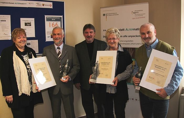 Die CONTek IBC-Service GmbH aus Ellrich, den Hausmeisterservice Zimmermann und die Gemeindeverwaltung Wipperdorf hat die Jury unter den Bewerbern für diese Auszeichnung ausgewählt. Die Preisträger bestätigten, wie wichtig der Einsatz älterer Mitarbeiter sei.
