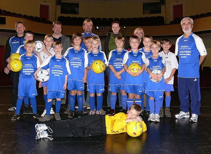 Intendant Lars Tietje begrüßte die Nachwuchs-Fußballer auf der Bühne des Theaters Nordhausen. Dann führte die Leiterin des Jungen Theaters, Bianca Sue Henne, die Mannschaft hinter die Kulissen des Theaters. Die kleinen Fußballer waren überrascht, was es hier alles zu sehen gab. Im Fußballoutfit durchquerten sie die geheimnisvollen Gassen hinter und unter der Bühne, lernten den Arbeitsplatz ihres Trainers im Orchestergraben kennen und merkten, dass es zwischen einem Sportler und einem Musiker doch einige Gemeinsamkeiten gibt. Beide müssen viel üben, brauchen Disziplin, Konzentration und Teamgeist, müssen bereit sein, miteinander zu kommunizieren und ihren Mitspielern auch Respekt erweisen.