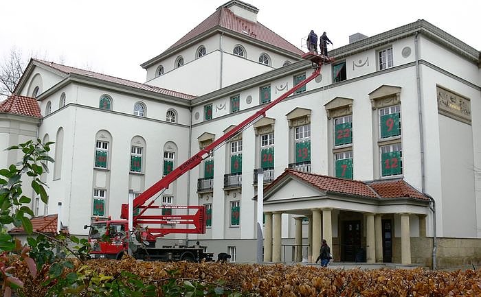 Der Dezember 2010 kann kommen, die Organisatoren des größten Adventskalenders Nordthüringens, vielleicht sogar des ganzen Freistaates, sind startbereit. 24 Fenster des Theatergebäudes wurden heute mit großen Zahlen versehen...
