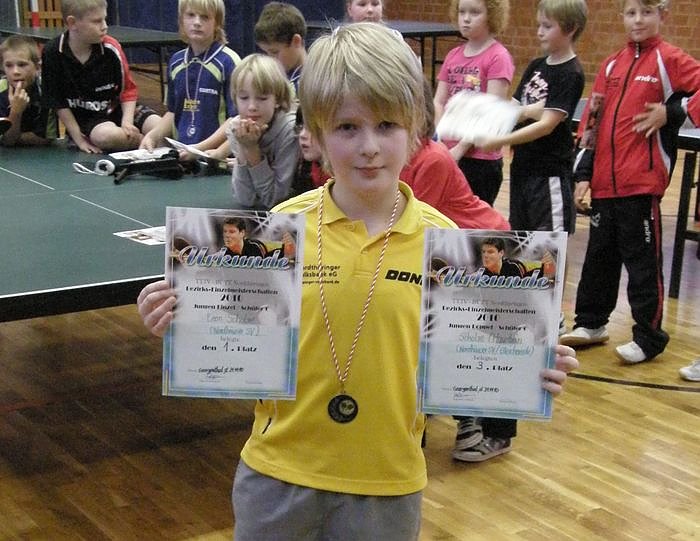 Sein Meisterstück lieferte Leon Scholze (Bild) ab. In seinen vier Vorrundenspielen, dem Viertel- und Halbfinale gab er keinen Satz ab und konnte sich im Finale gegen den topgesetzten Spieler Julian Buchmann von TTC Rotation Weimar mit 3:1 durchsetzen. Damit ist er Bezirksmeister der Schüler C. Ein klasse Ergebnis und Belohnung für seinen Trainingsfleiß.
